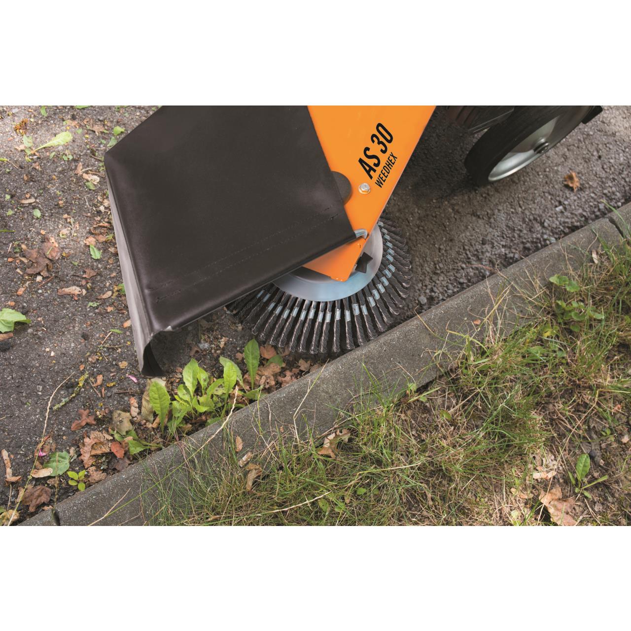 Für die Reinigung kleinerer Parkplatz- oder Hofflächen vom Unkraut ist der kompakte Wildkrautentferner AS 30 WeedHex 160 optimal geeignet. Für größere Areale eignet er sich als perfekte Ergänzung für die bewährte AS 50 WeedHex. Enge Stellen oder unebene Flächen werden mit der AS 30 WeedHex 160 vorgereinigt und anschließend die komplette Fläche mit der AS 50 WeedHex vom Unkraut befreit. Die AS 50 WeedHex verfügt über einen Fangsack. Lästiges Nachkehren entfällt.